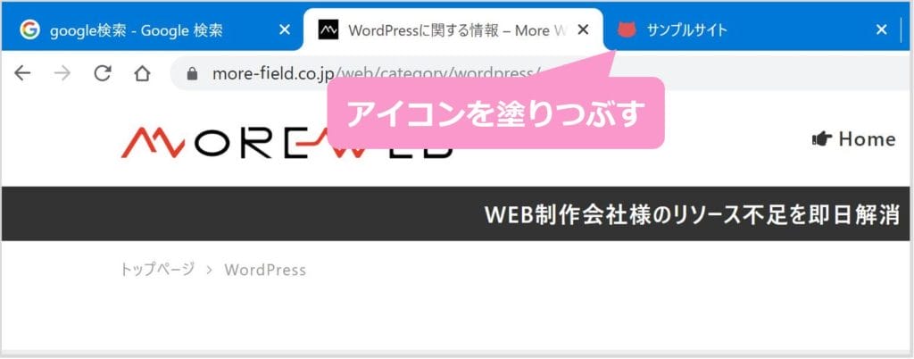 冒頭でも書いたように、ファビコンは利用者が”どのタブが何のWEBサイトか”をわかりやすくしたり、”あなたのWEBサイトを印象づける”ためのものです。