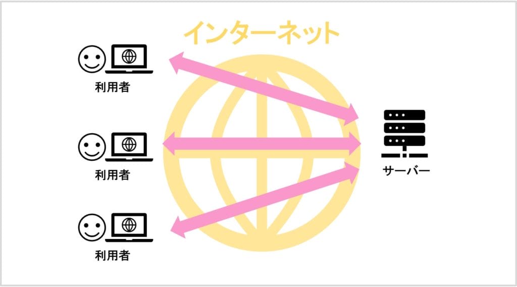 サーバーの利用者を「クライアント」といい、このようなシステムをクライアントサーバーシステムといったりします。