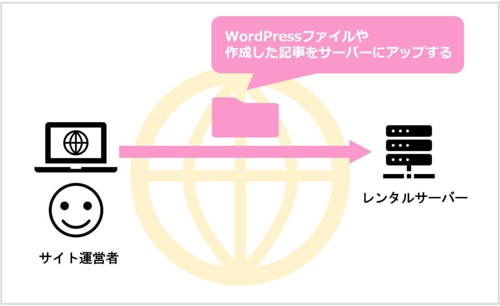 WordPressソフトウェアや、記事内に利用する画像ファイルなどをサーバーに保存しなければなりません。